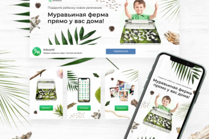 Дизайн для группы ВК по продаже муравьиных ферм «Ant World»
