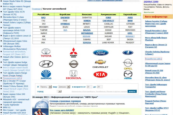 Перед нами стояла амбициозная задача в далеком 2005 году, вывести в Интернет информационный портал по автомобильной тематике. В те далекие времена, мы разработали уникальную систему управления под данный проект, которая держит нагрузку на относительно-слабом хостинге. Задача была обеспечить приемлемое время отклика при суточной посещаемости до 15 000 человек на хостинге со стандартным тарифным планом. Помимо этого система полностью удовлетворяла всем критериям ранжирования и смогла, за более чем 8 лет, успешно пережить множество апдейтов поисковых алгоритмов.