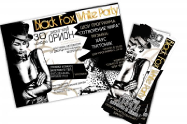 Флаер и пригласительный билет для тематической вечеринки "Black Fox White party"