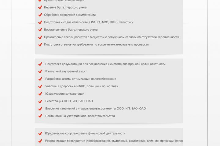 Перед нами стояла задача разработать сайт для компании занимающейся бухгалтерскими и юридическими услугами в Москве. Далее приводим итоговые макеты проекта.