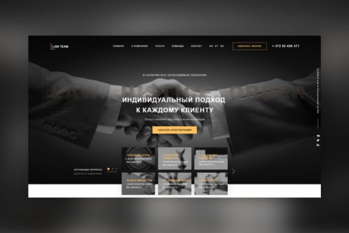 Данный сайт разработан под ключ для компании Law Team, которая занимается юридическими услугами. Акцент сделан на выдержанный стиль и услуги компании.