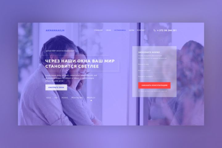 Сайт разработан для компании Aknamaailm в Таллинне. Компания занимается продажей окон. Необходимо было отразить позитивное и спокойное настроение компании.