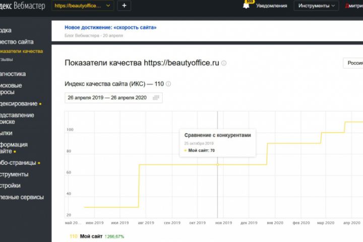 Улучшение показателей качества сайта в Яндексе, динамика