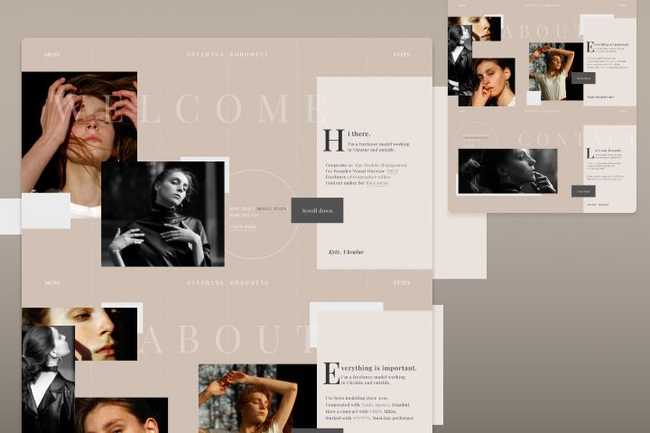 Так как сайт для модели должен подчеркивать ее красоту, привлекательность была важнейшим элементом его разработки. Но, конечно, на первом месте всегда остается удобство.