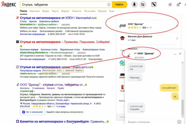 Интеграция чата с выдачей Яндекса, 2018 поисковая оптимизация, повышение конверсии
