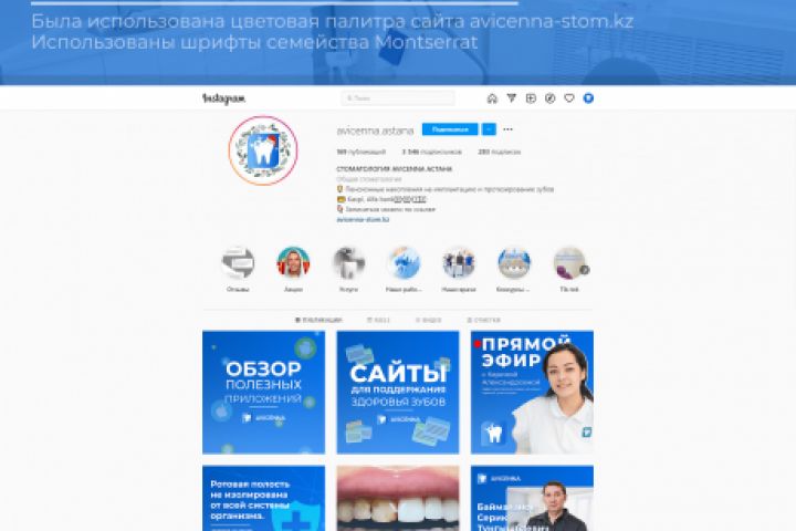 Оформление инстаграм аккаунта стоматологии, выполнено в рамках тех.задания.