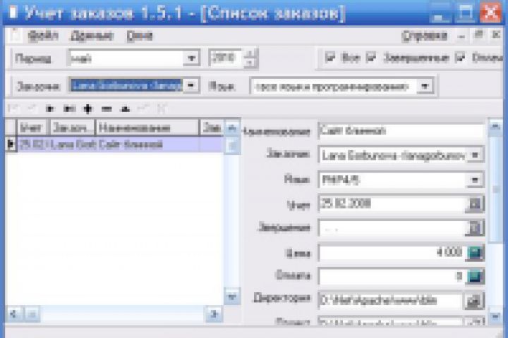 Учет заказов фрилансера. (Требуется установленный BDE) - база клиентов - база средств - фильтр отбора данных - отчет