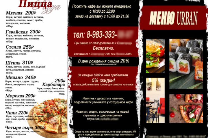 Визитка кафе. Доставка