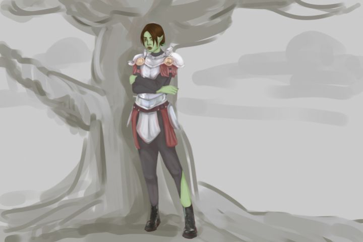 Концепт персонажа девушки орка рыцаря с использованием программы Крита и фотобаша