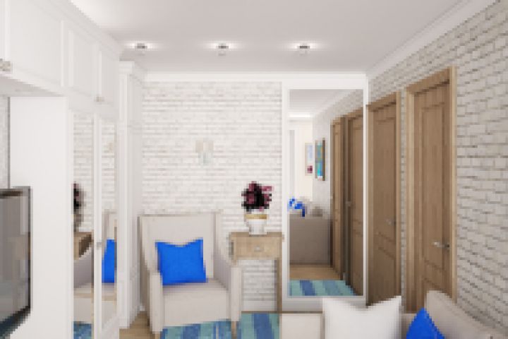 Перепланировка двухкомнатной хрущевки в трехкомнатную квартиру. Гостиная. Согласованный вариант.