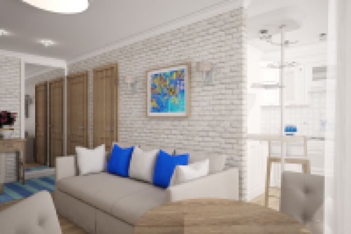 Перепланировка двухкомнатной хрущевки в трехкомнатную квартиру. Гостиная. Согласованный вариант.