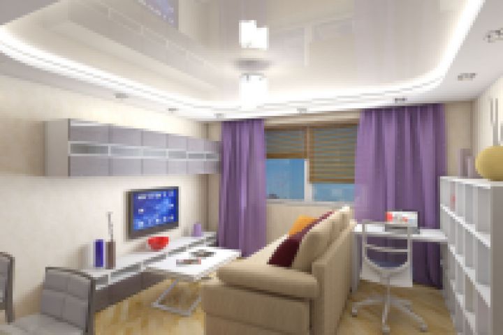 Гостиная в однокомнатной квартире в современном стиле. Квартира-студия. Перепланировка.