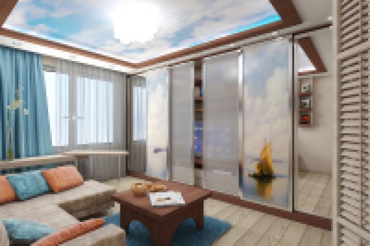 Дизайн интерьера однокомнатной квартиры в морском, средиземноморском стиле.