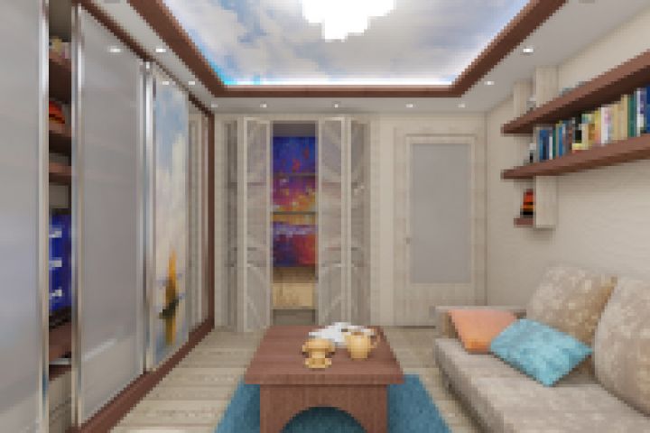 Дизайн интерьера однокомнатной квартиры в морском, средиземноморском стиле.