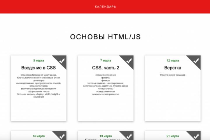Вёрстка удобного календаря занятий для Яндекс.Яслей с автоматическим проставлением галочек (занятие завершено) + мобильная версия. HTML, CSS, JavaScript. Посмотреть можно по ссылке: https://vmik7.github.io/YaCalendar/ Дизайн мой.