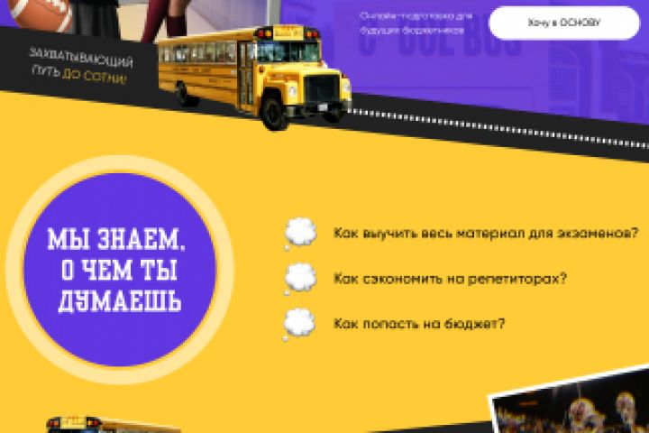 Заказчиком являлась онлайн-школа по подготовке к ЕГЭ BuboUnicus. Основной запрос состоял в том, чтобы отразить на сайте настроение американских школ, а также создать визуальные ассоциации с молодежными сериалами и фильмами.
