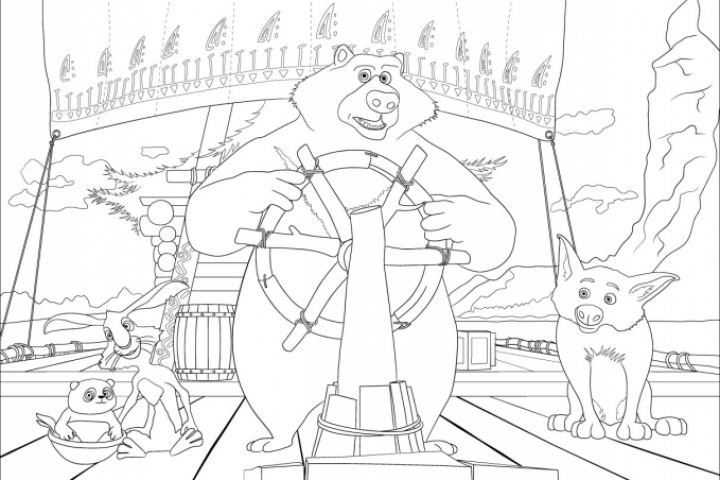 Эта линейная иллюстрация послужила для печати раскраски. По желанию заказчика я создала данное изображение по стоп-кадру из мультфильма, в точности обрисовав контуры персонажей и подкорректировав композицию под нужный формат.