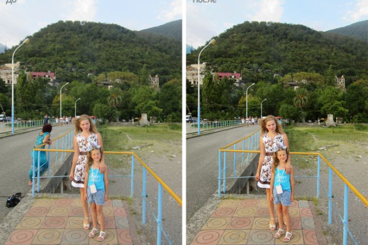 С помощью программы Adobe Photoshop удалены лишние объекты и люди на заднем фоне, а также проведена лёгкая коррекция контраста и резкости фотоснимка