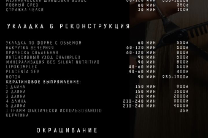 Прейскурант салона красоты