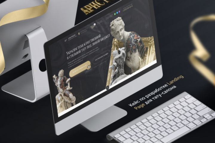 «Разумный маркетинг даст результат, только в совокупности с крутой упаковкой и грамотной подачей.» Дизайн осуществила коллега из моей команды Ксения. Изучила айдентику, позиционирование тату-студии. Её задача была выдержать уникальный стиль существующей группы Вконтакте и перенести его в будущий лендинг.