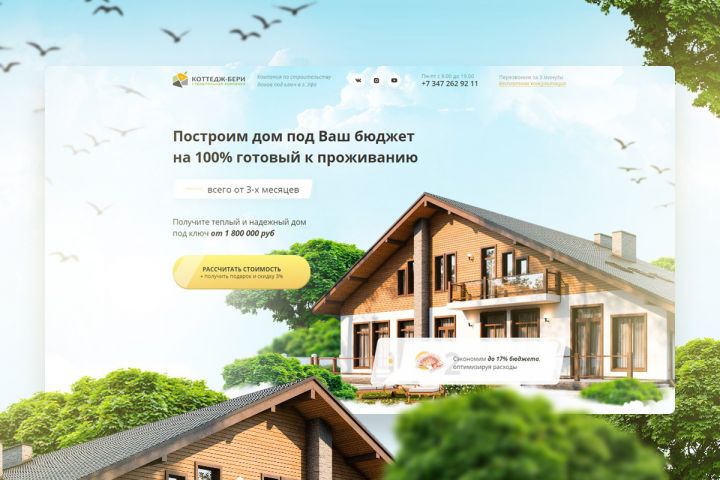 Работал в тандеме с программистом. Реализовали все идеи, который попросил заказчик. Наполнили сайт контентом (текст, готовые дома, портфолио и др.)