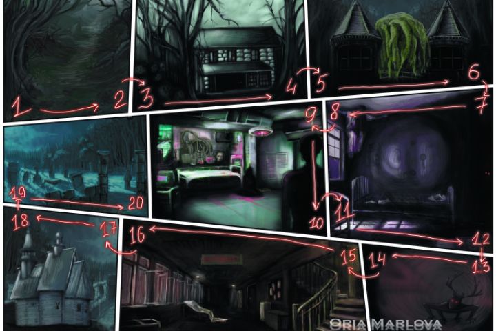 Игровое поле для настольной игры с отрисованными иллюстрациями