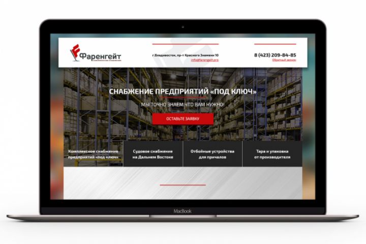 Лендинг создан для компании Фаренгейт, специализирующейся на комплектации снабжения строительных объектов и судоходства под ключ.