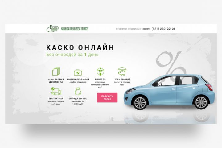 Необходимо было разработать Landing Page под ключ для компании, которая занимается автострахованием.