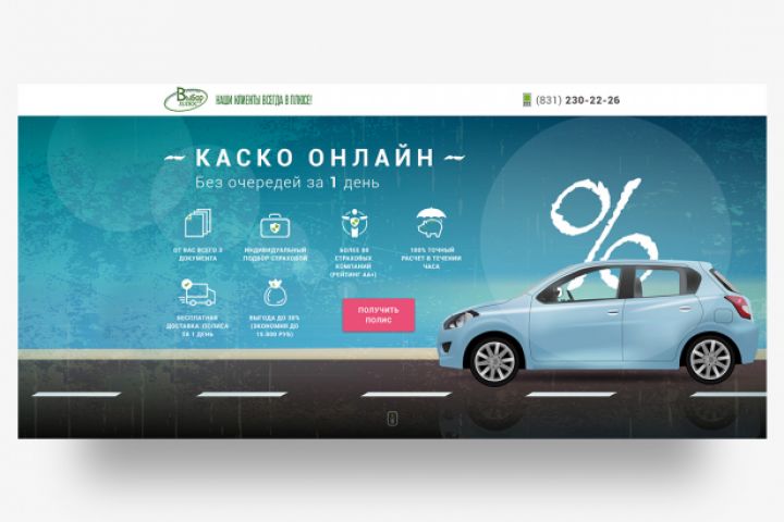 Необходимо было разработать первый экран для Landing Page для компании, которая занимается автострахованием.