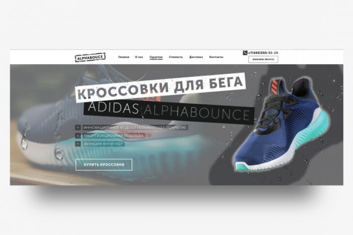 Необходимо было разработать первый экран Landing Page для продажи кроссовок ALPHABOUNCE фирмы ADIDAS.
