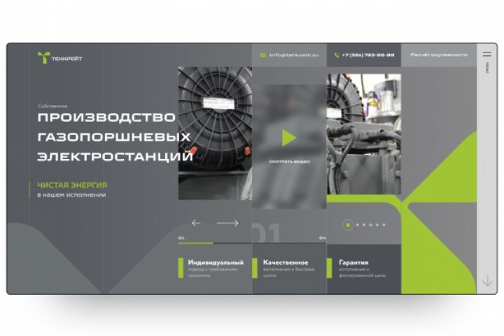 Разработка дизайна для сайта компании "ТЕХКРЕЙТ". Производственное предприятие полного цикла, инженерный центр разработок и технического творчества в сфере энергетики. Основное направление - это разработка и изготовление газопоршневых электростанций.