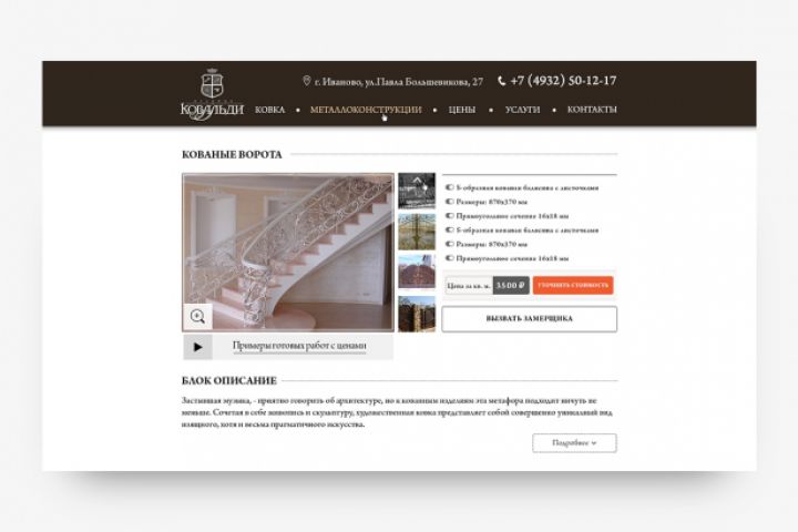 Необходимо было создать сайт для кузницы. Компания создает уникальные изделия из металла. Сама отливает и имеет большой успех. Клиент решил расширяться, а для этого нужен стильный, современный сайт компании с каталогом, ценами и информацией о возможных вариантах сотрудничества.