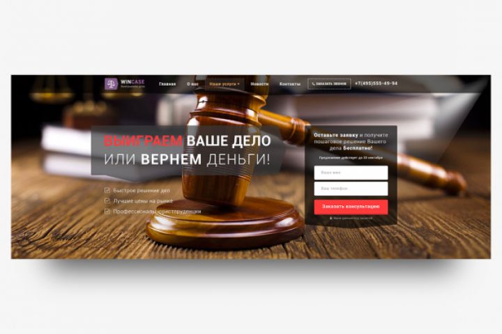 Задача была сделать стильный, современный сайт - визитку по оказанию юридических услуг. Основное требование клиенты была - это понятность и удобство поиска нужной информации на сайте.