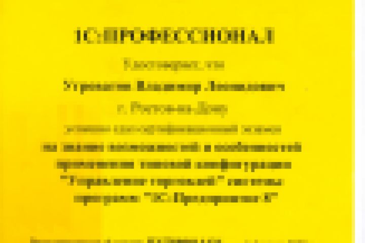 Сертификат 1С:Предприятие 8 Управление торговлей