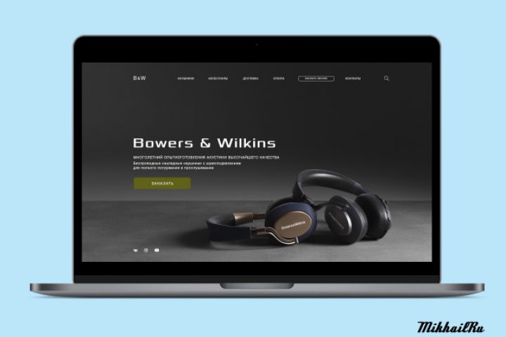 Продающий Landing Page с качественными наушниками Bowers & Wilkins