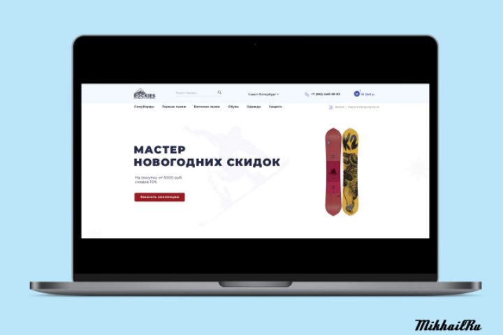 Белый и голубой цвета подчеркнули тематику зимнего спорта, а размещенные на сайте баннеры помогают пользователю быть в курсе