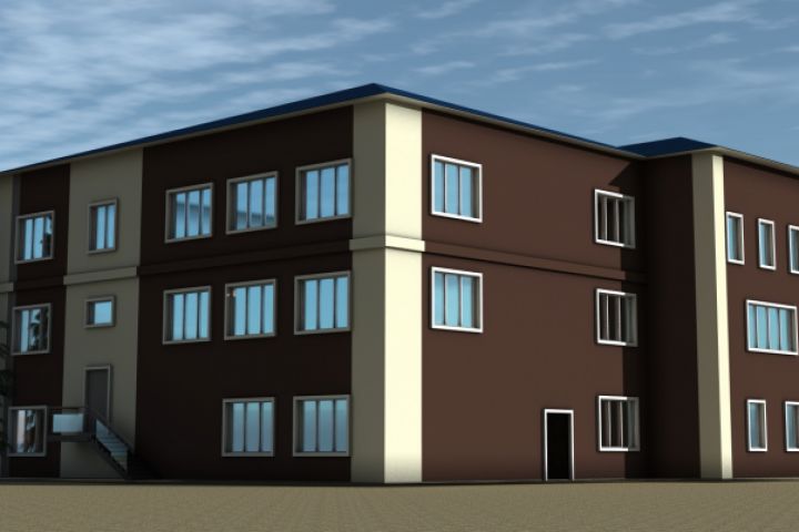 Дизайн облицовки фасада офисного здания панелями АЛПАН