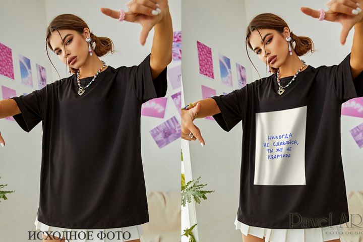 Наложение принта. Наложение логотипа. Цветокоррекция. Улучшение качества фотографии.