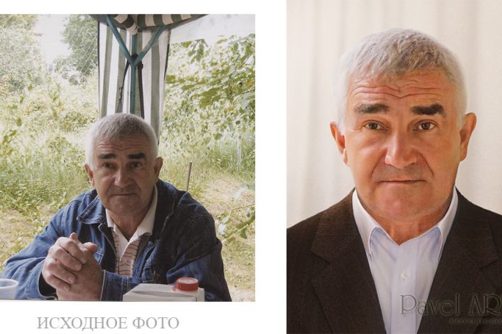 Обработка фото для памятника. Глубокая ретушь. Обтравка и замена фона. Замена одежды(переодевание).