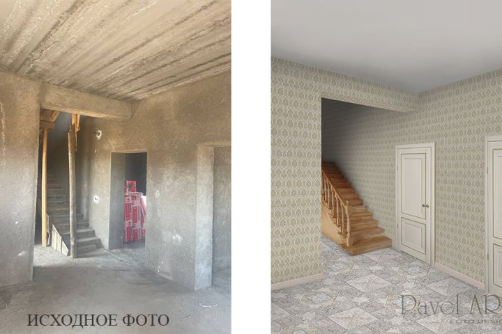 Итерьер 8. Обработка фото. Нанесение обоев и плитки. А так же элементов интерьера.
