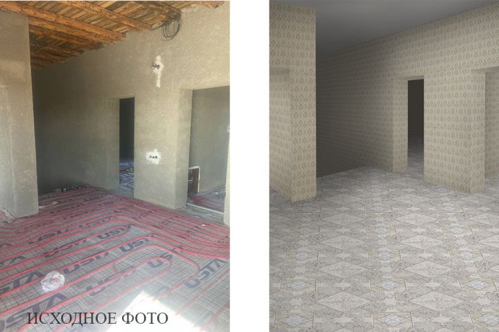 Итерьер 8. Обработка фото. Нанесение обоев и плитки.