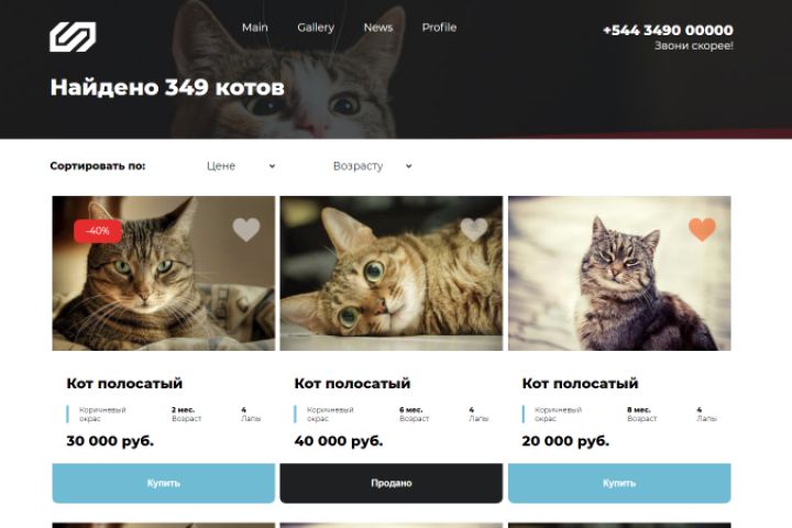 Адаптивная вёрстка, HTML/CSS/JS, SVG спрайт, сортировка товаров на странице, валидация формы