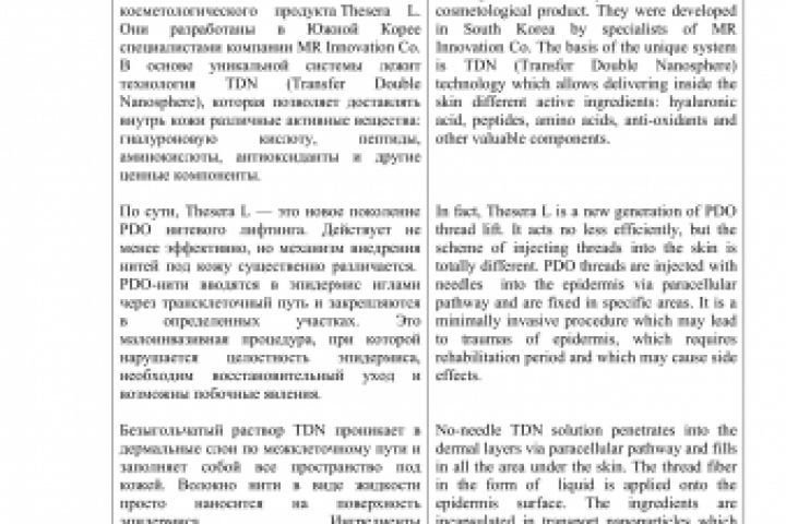 Описание продукта для нитевого лифтинга (косметология)