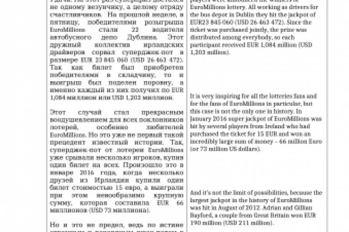 EuroMillions lottery (перевод по теме "Азартные игры")