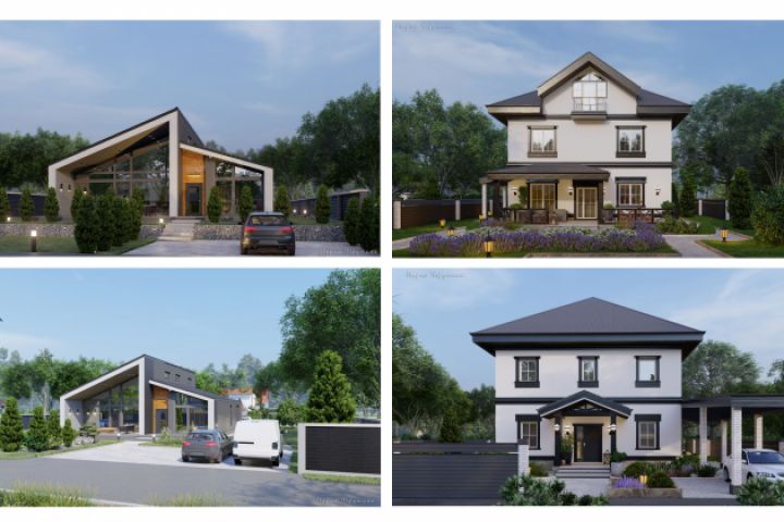 Проекты частных домов. АР и АС. Эскизы, каркасные, газобетонные частные дома, бани, гаражи.