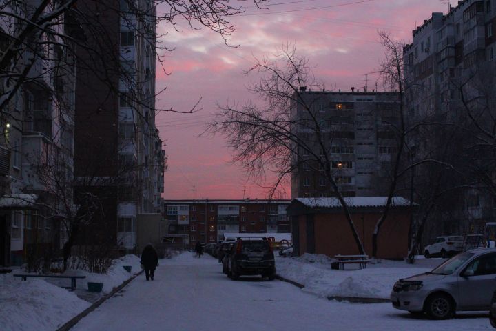 Фотография прекрасного розового зимнего заката