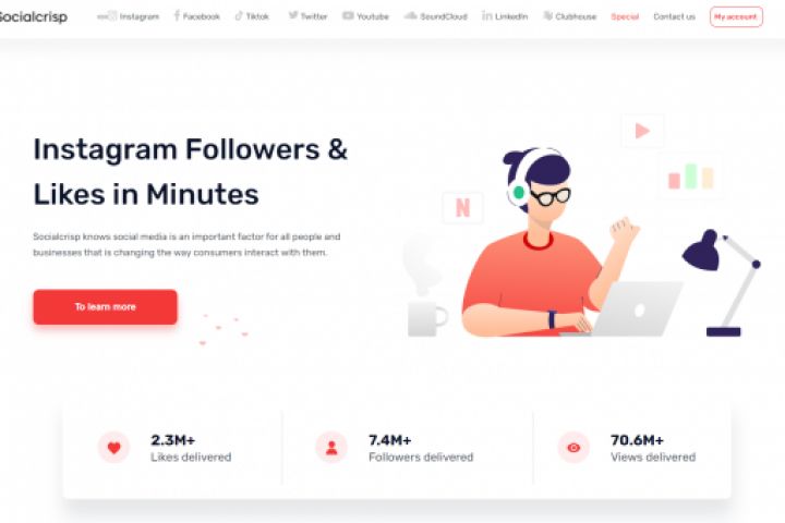 Socialcrisp - сайт создан для накрутки и добавления подписчиков в соц сети. Техническе работы на сайте: - HTML 5 -CSS 3 -JavaScript: - Анимированное главное меню -Слайдер JQuery -Адаптивность - Меню габургер