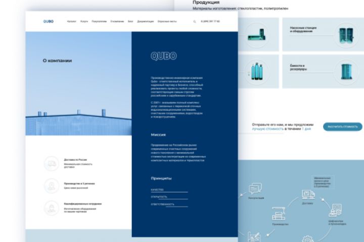 Корпоративный сайт компании по производству систем очистки стоков и воды. Основная задача: рассказать о компании и ее услугах, показать каталог производимой продукции.