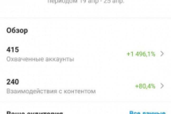 Статистика в инстаграм, через неделю как я начал с ним работать.