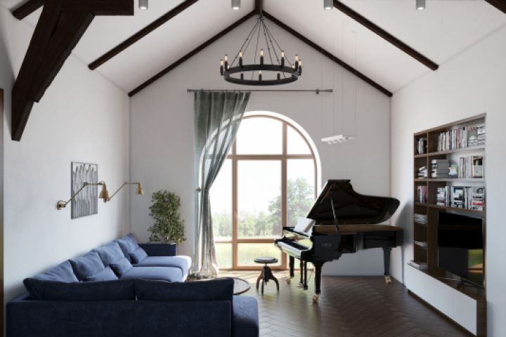 Визуализация интерьера загородного дома в современном стиле.